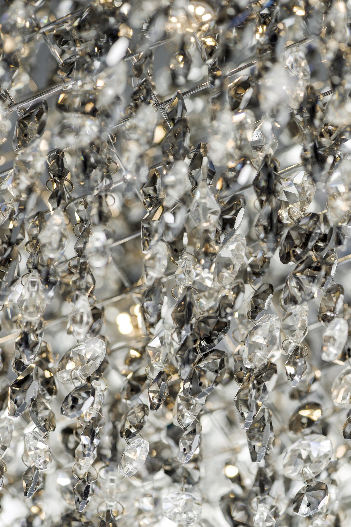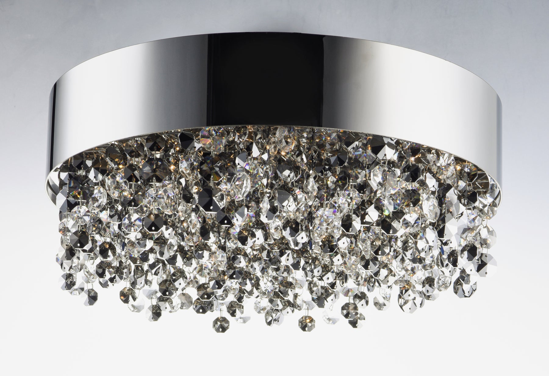 A sea of crystal strands suspend from within drums of steel which are finished in your choice of Bronze with Scotch crystal or Polished Chrome with Mirror Smoke crystal. Hidden inside the drum is a powerful dimmable LED source which has the crystals dancing in the night without any glare in your eyes.